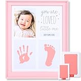 可愛らしいベイビーハンドプリント&フットプリントフレームキット – 赤ちゃん用の記念フレームが家族の思い出を大切に保存してくれます -安全性の高い非毒性クレイ、アクリルガラス、上質な木製フレーム使用 -出産祝い・ベビーギフトに最適です