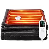 電気毛布 掛け敷き兼用 132*108cm 大判サイズ 3段階温度調整 ふわふわ 電気ひざ掛け フランネルとコットンウール 厚手生地 電気ブランケット ふかふか ソファ ブランケット 速暖 恒温加熱 過熱保護 切り忘れ防止 省エネ 柔らか 丸洗い可 ダニ退治 抗菌防臭 防寒対策 暖房器具 肩掛け 膝掛け 毛布 PSE認証済み (グレー)