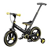 6イン1 子供用 折りたたみ式三輪車バランスバイク プッシュハンドル付き コンバーチブル 幼児用自転車 3~8歳の男の子&女の子向け (イエロー)