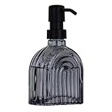 OCTMUSTARD ガラスキッチンソープディスペンサー バスルーム 9オンス 詰め替え可能 液体モダンソープディスペンサー ハンドソープ、ローションディスペンサーボトル用 – ホーム 業務用カウンタートップ装飾 (グレー)