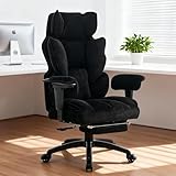 【3年保証付き】Efomao ゲーミングチェア シェニール生地 オフィスチェア 社長椅子 デスクチェア 高耐久 180kg耐荷重 人間工学 リクライニング 90°-135° 昇降調節 360°回転 キャスター付 長時間作業向け 高級チェア (シェニール生地 ブラック)